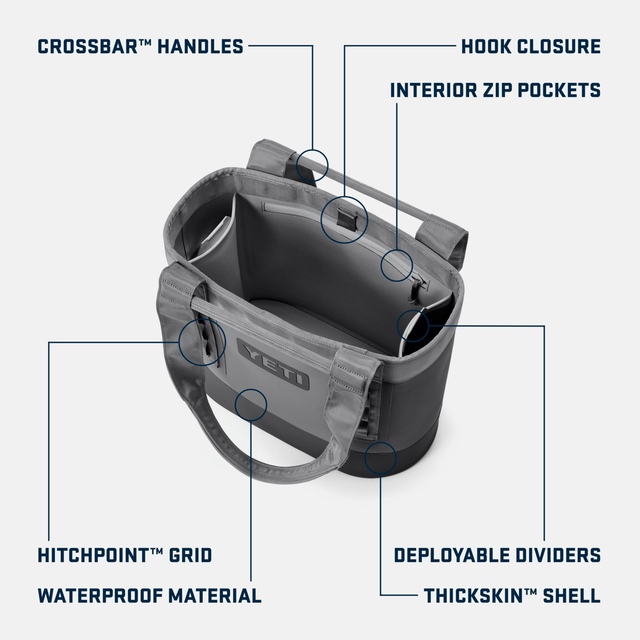 The YETI Camino® 20 Carryall Tote Bag is made with a ThickSkin shell and EVA moulded bottom for durability. The HitchPoint™ grid offers versatile attachment points, making it ideal for organized, rugged outdoor use. A reliable companion for any adventure, this YETI tote ensures your essentials are always within reach.