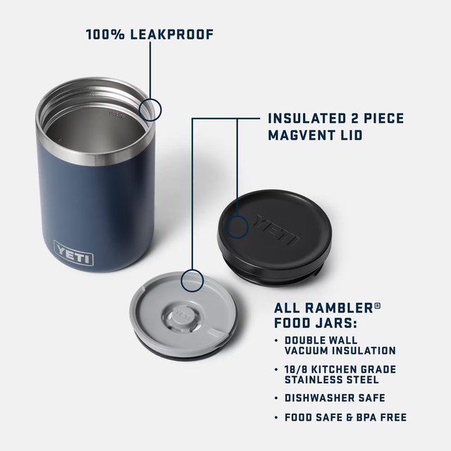 Stay energized on the go with the YETI ® Rambler® 16 oz Leakproof Food Jar. Perfect for keeping your meals at the desired temperature, this jar's double-wall insulation ensures your food stays hot or cold until you're ready to enjoy it. The 100% leakproof design and MagVent lid make it a reliable companion for any adventure.