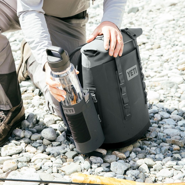 The YETI Rambler® 18 oz Water Bottle Sling makes staying hydrated on outdoor adventures easy. This durable sling securely holds your 18 oz Rambler bottle, allowing you to enjoy it while snacking, skipping rocks, or playing fetch with your dog. Attach it to the HitchPoint Grid on your YETI Hopper Soft Cooler or Camino Carryall Bag for versatile carrying options. Use the removable shoulder strap to carry it crossbody when hiking light. The water bottle bag's EVA-moulded bottom ensures a sturdy base, and the easy-to-clean design makes travel convenient.