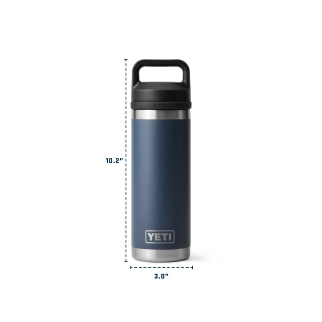 The YETI Rambler® 18 oz Water Bottle with Chug Cap, double-wall vacuum insulation, and a TripleHaul™ handle keep your drinks cold for a quick and easy sip. This dishwasher-safe and impact-resistant water bottle with food-grade stainless steel has a wide mouth for refill.