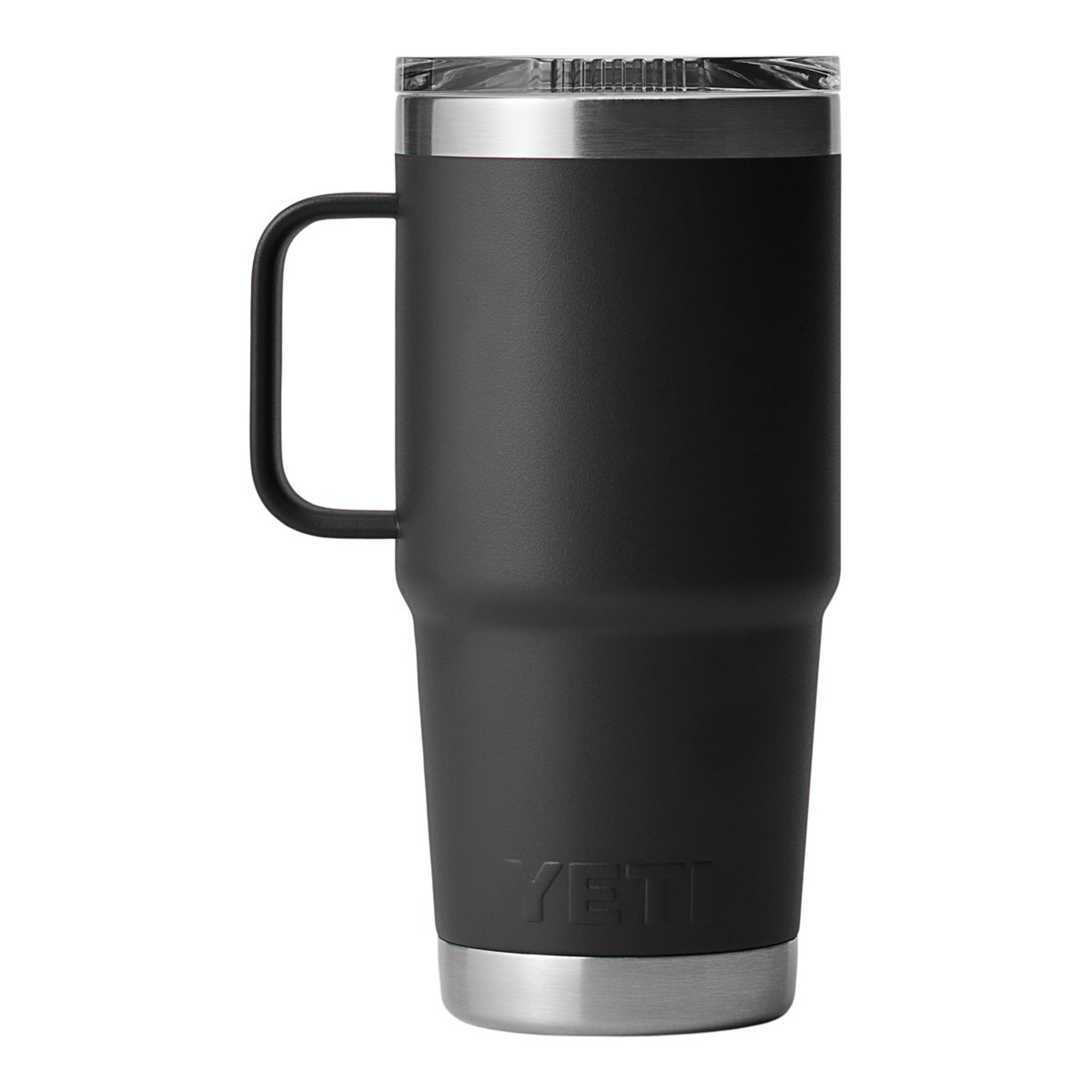 The YETI Rambler® 20 oz Travel Mug features the signature StrongHold™ Lid for superior leak resistance while you're on the go. Stainless steel construction and dishwasher-safe DuraCoat™ colour ensure long-lasting use without chipping, fading or cracking. The raised handle design is cup-holder friendly.