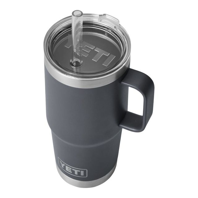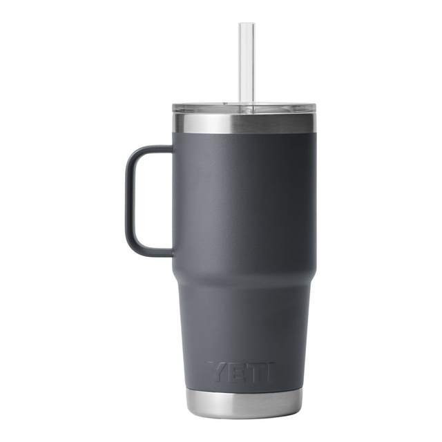 Get on-the-go hydration with the YETI Rambler® 25 oz Mug with Straw Lid. This durable, kitchen-grade stainless steel mug features double-wall vacuum insulation, a no-sweat design and a crystal-clear, shatter-resistant lid. Ideal for extended, active days with a design that fits most cupholders.