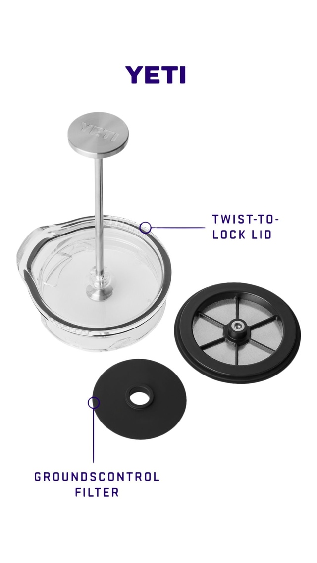 YETI's GroundsControl Filter halts the brewing process to prevent over-extraction and bitterness