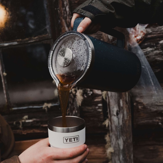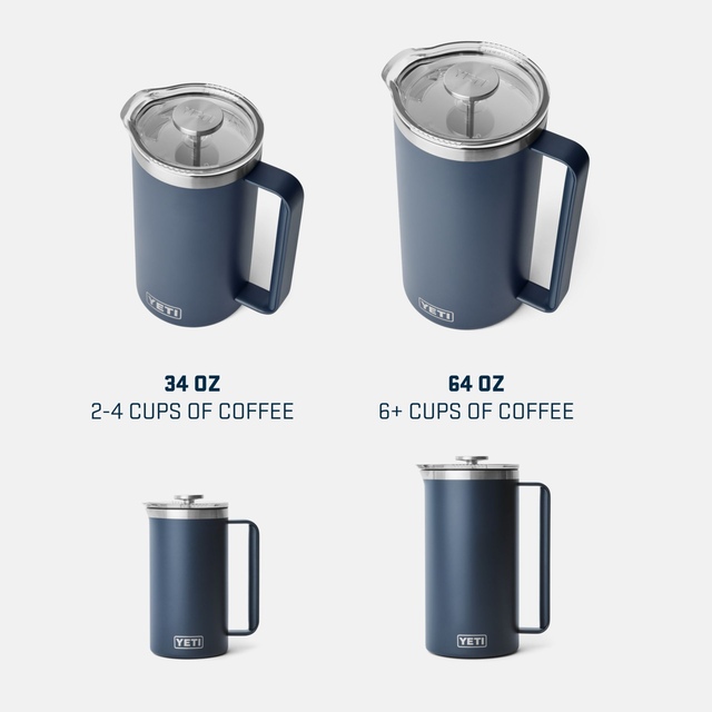 The YETI Rambler® 64 oz French Press is an insulated stainless steel coffee maker that brews consistently. Double-wall vacuum insulation maintains beverage temperature, while stainless steel construction ensures durability. When the French press lid is removed, this coffee maker press can also be used as a 1.89L/64 oz pitcher.