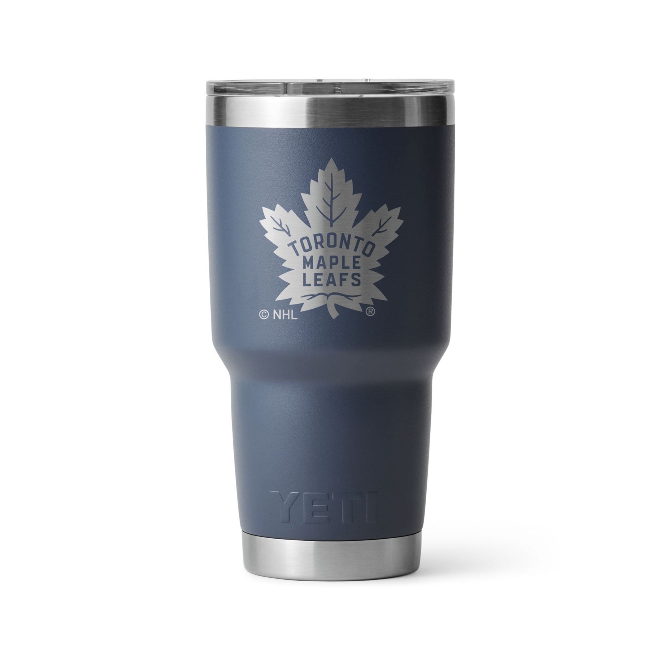 The YETI Rambler® Maple Leafs® 30 oz Tumbler with MagSlider™ Lid is the tumbler that gets you through the day. Your morning brew stays hot, and your iced coffee will stay cold - so take your time. Kitchen-grade stainless steel with double-wall vacuum insulation will protect your drink at all costs. Like the entire Rambler Family, the 887 ml Tumbler and whichever lid you put on it are dishwasher-safe for easy cleaning. While the magnet on the included MagSlider™ Lid adds an additional barrier of protection for keeping drinks contained and preventing heat or cold from escaping, please note - this magnet component is not leakproof and will not prevent spills. Available in Stainless, DuraCoat™ colors and Seasonal finishes.