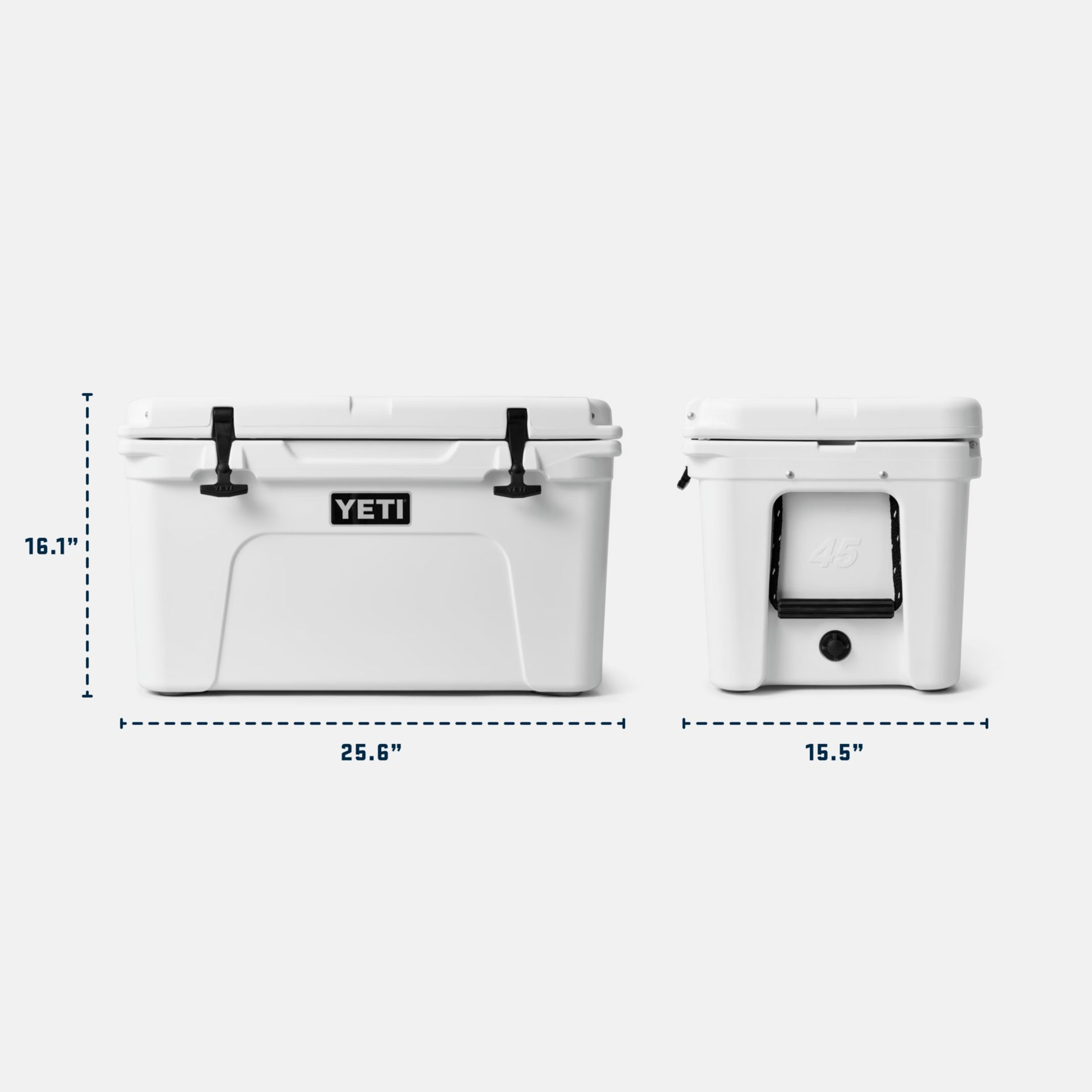 Virtually indestructible with rotomolded construction and PermaFrost™ Insulation, the YETI Tundra® 45 Hard Cooler is extremely durable. It features UV protection so you can safely take it outdoors for hours on end. The cooler maintains ice integrity with advanced temperature retention. Easy to carry and drain, this cooler holds 54 beverage cans.