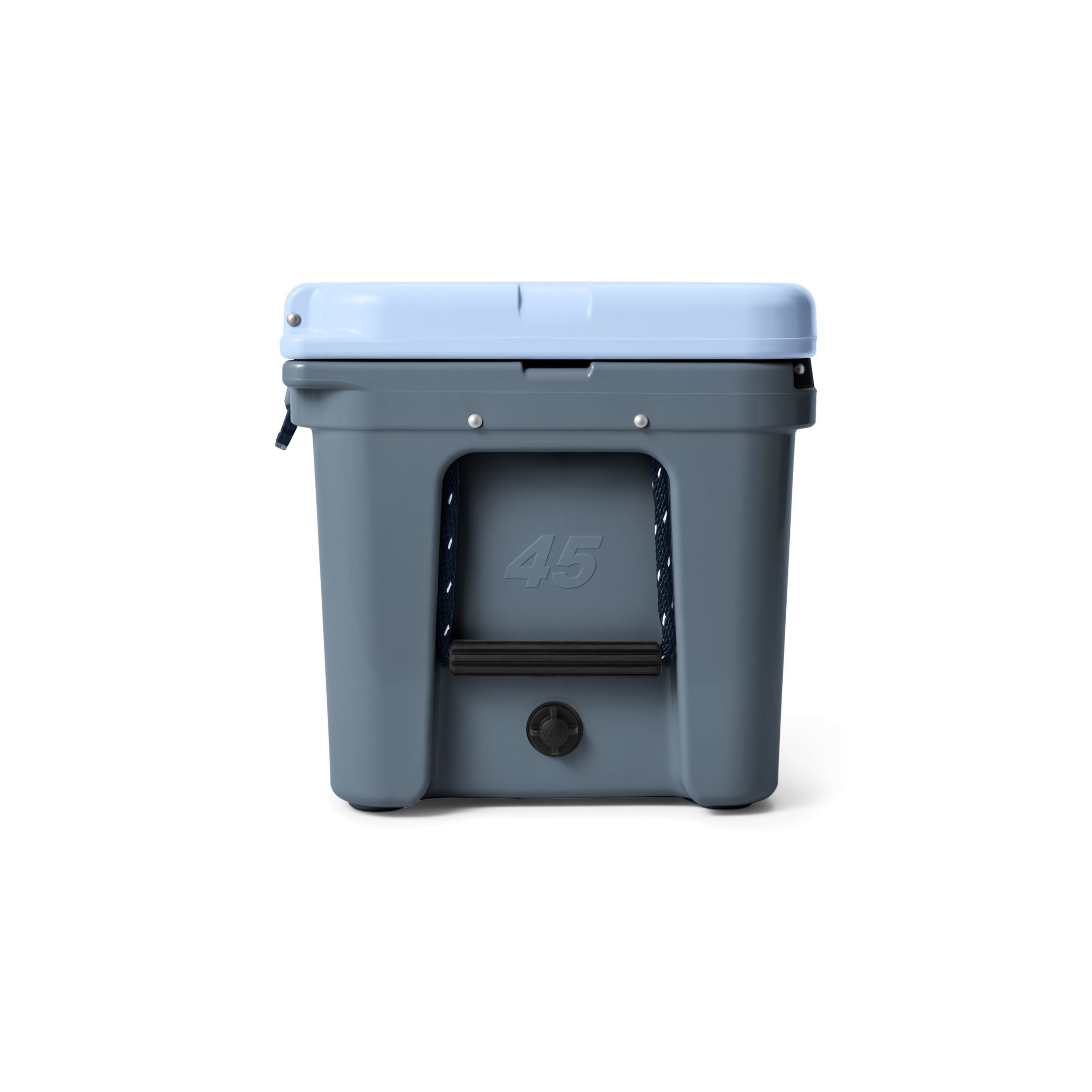 Virtually indestructible with rotomolded construction and PermaFrost™ Insulation, the YETI Tundra® 45 Hard Cooler is extremely durable. It features UV protection so you can safely take it outdoors for hours on end. The cooler maintains ice integrity with advanced temperature retention. Easy to carry and drain, this cooler holds 54 beverage cans.