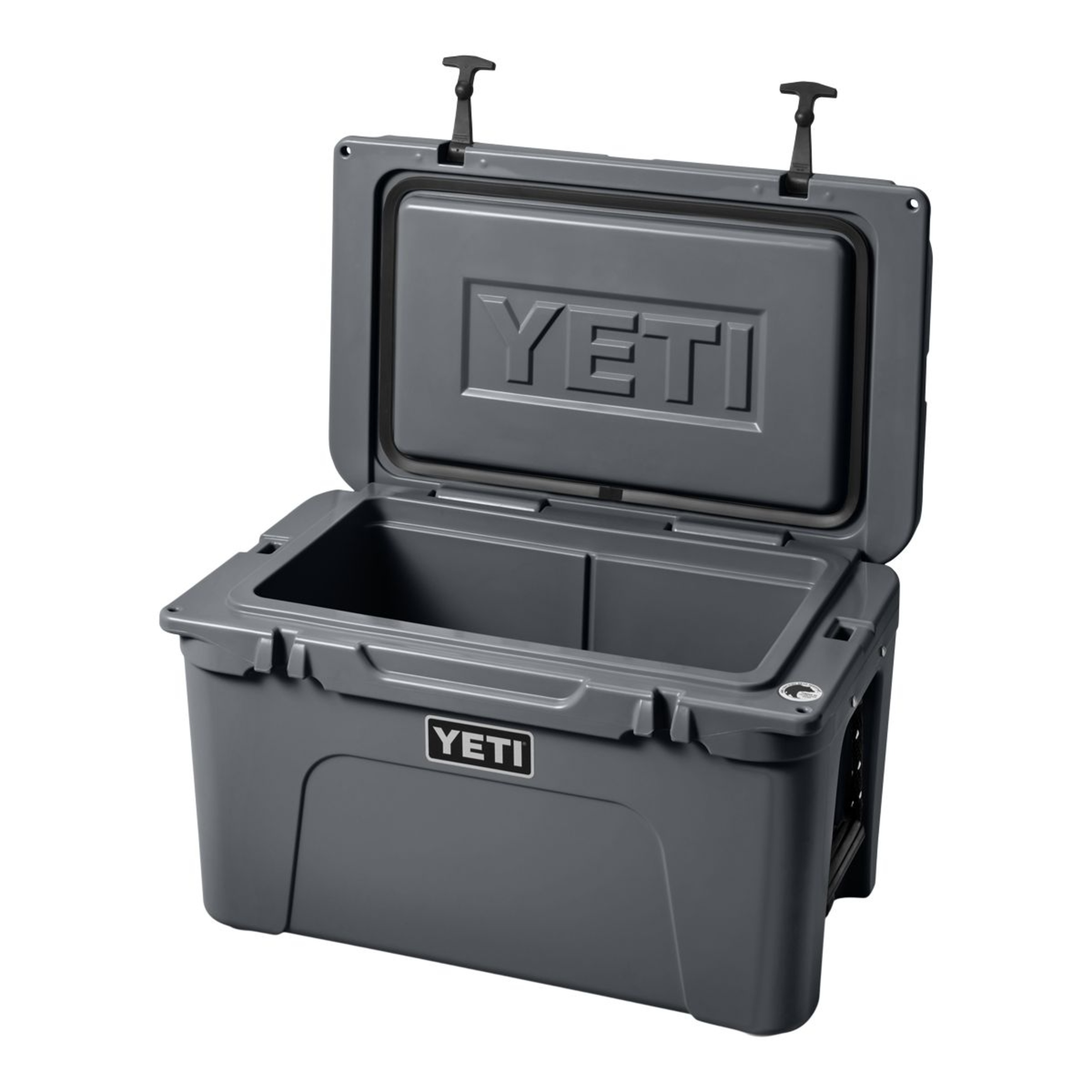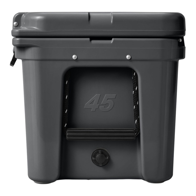 Virtually indestructible with rotomolded construction and PermaFrost™ Insulation, the YETI Tundra® 45 Hard Cooler is extremely durable. It features UV protection so you can safely take it outdoors for hours on end. The cooler maintains ice integrity with advanced temperature retention. Easy to carry and drain, this cooler holds 54 beverage cans.