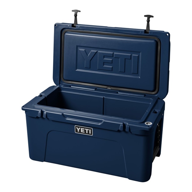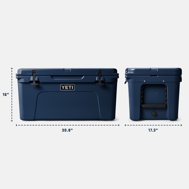 Designed for superior cold retention, the YETI Tundra® 65 Hard Cooler features PermaFrost™ Insulation and a ColdLock™ Gasket. Durability is ensured with the Rotomolded construction and NeverFail hinge system. Ideal for carrying your catch or food and beverages, this YETI cooler has a Vortex Drain System when your adventures are over.