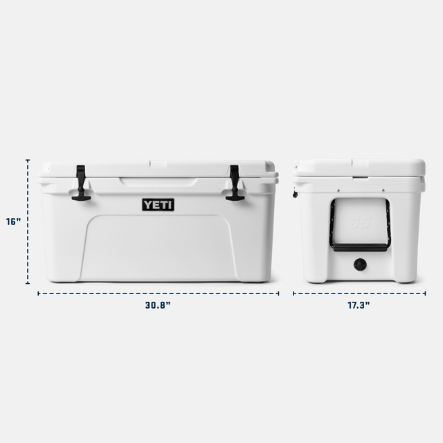 Designed for superior cold retention, the YETI Tundra® 65 Hard Cooler features PermaFrost™ Insulation and a ColdLock™ Gasket. Durability is ensured with the Rotomolded construction and NeverFail hinge system. Ideal for carrying your catch or food and beverages, this YETI cooler has a Vortex Drain System when your adventures are over.
