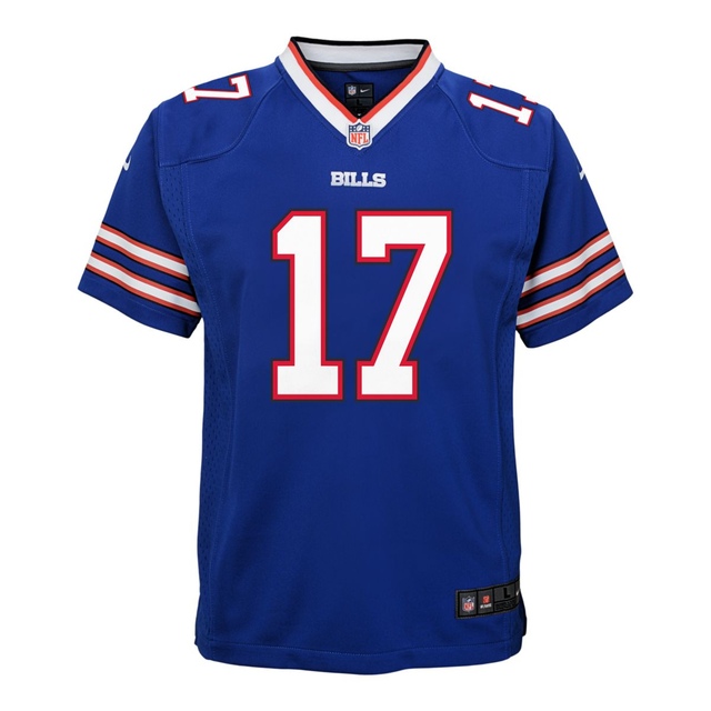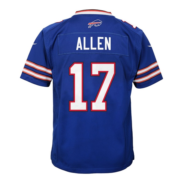Cheer on the Buffalo Bills in the youth Nike NFL Game Jersey in team colour with authentic Josh Allen name and number. Made for the enthusiastic young NFL fan.
