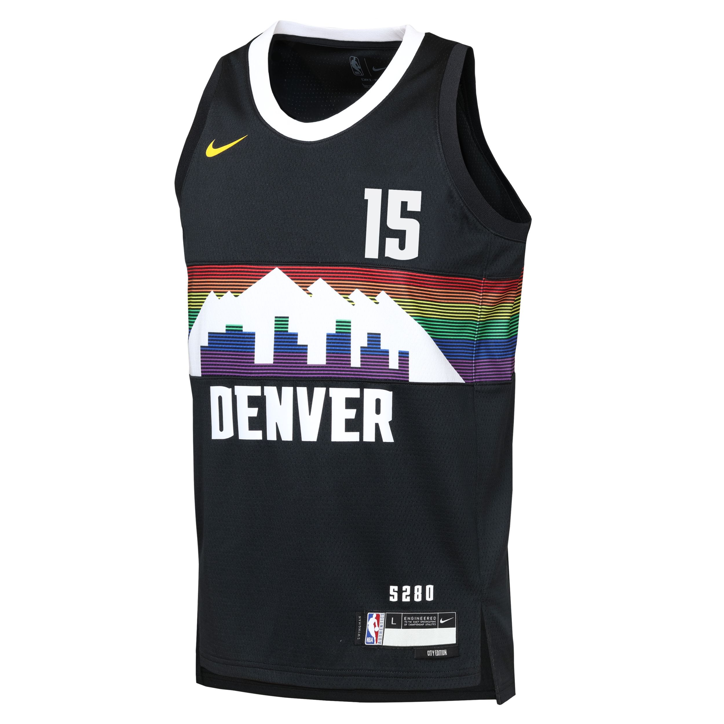 Let your young baller show off their Denver Nuggets pride in this Nikola Jokić Jersey from Nike. Built with Move To Zero technology, this 2025/26 City Edition jersey is crafted using at least 75% recycled materials, supporting a sustainable future for the sport. Its lightweight double-knit fabric and Dri-FIT® technology help wick away moisture, keeping your kiddo cool and comfortable while cheering on the team. Heat-applied twill player and team details, paired with a droptail hem, complete this stylish tribute to their favorite player.