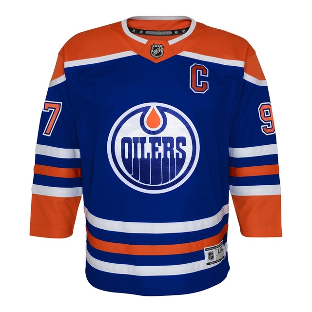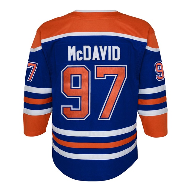 New for the 2023-2024 NHL season, the Edmonton Oilers NHL Premier team color blue home jersey. Iconic in design and farbcation. Complete with Connor McDavid #97 name and number. This is a must have jerseys for any young Oilers fan. Officially licensed bythe NHL and NHLPA. Youth 8-20 size range.