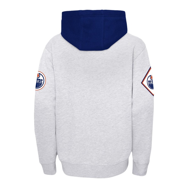 Stand out from the crowd in the NHL Star Shootout Fleece Hood. Comfortable cotton polyester brushed fleece. Oversized fit with kangaroo pocket. Team color 3 panel hood. Team name and logo center front chest with additional logo hits on both sleeves. A great look for any young NHL fan. Youth 8-20 size range. Officially licensed by the NHL.