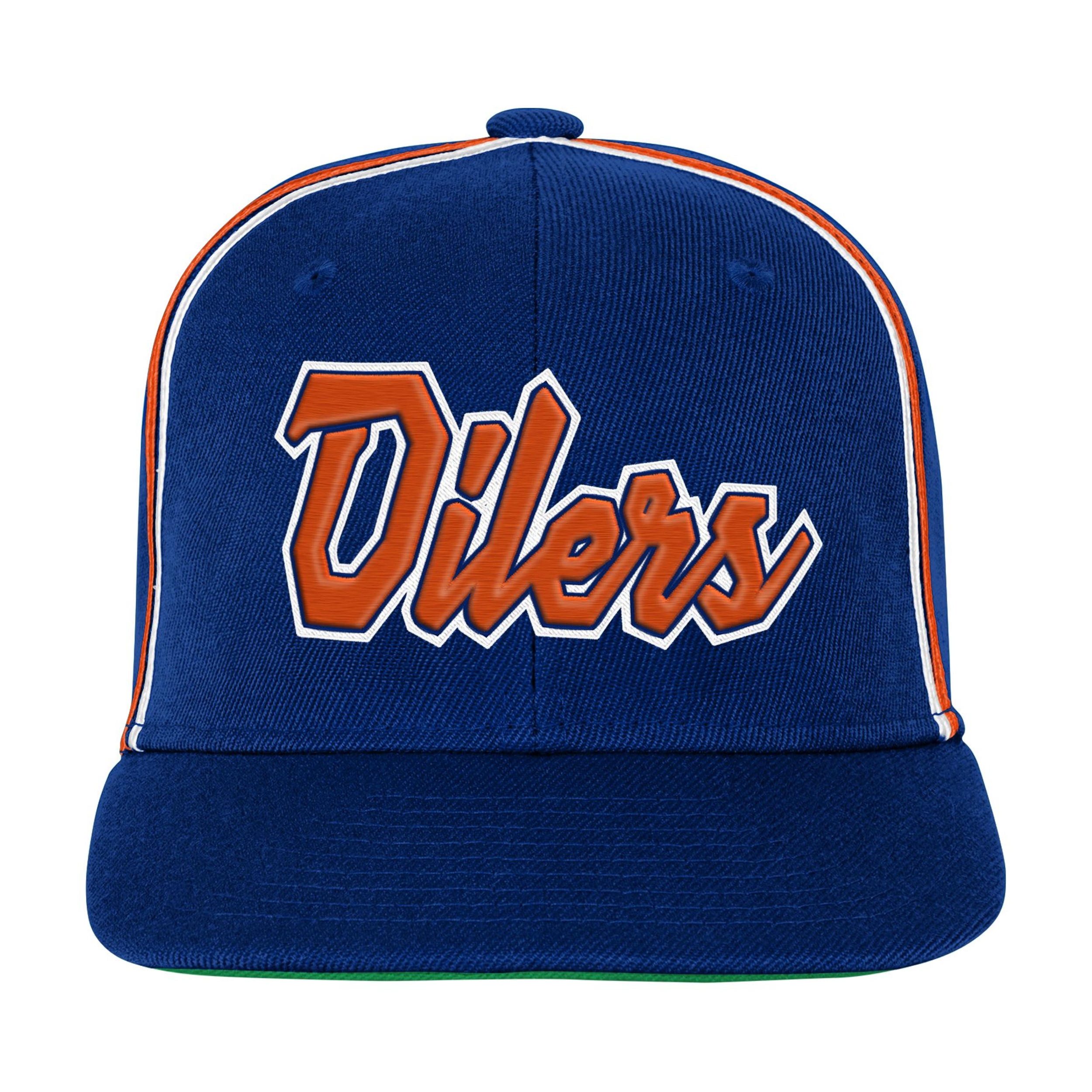 3D embroidered Edmonton Oilers team name prominently displayed on the front