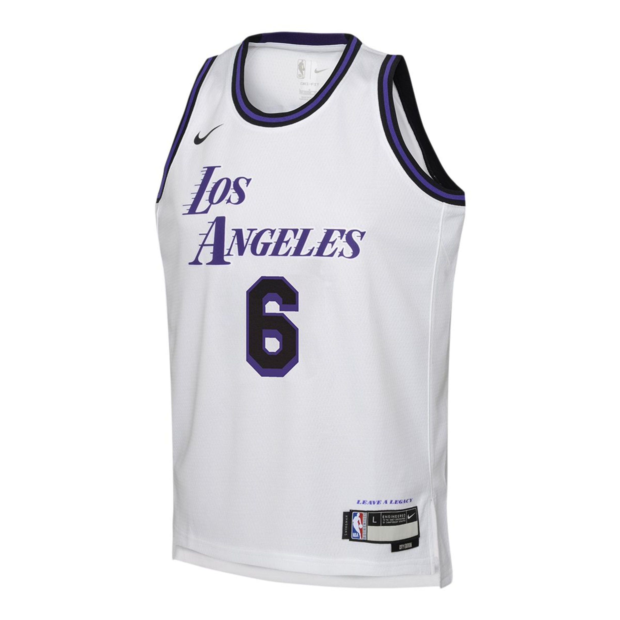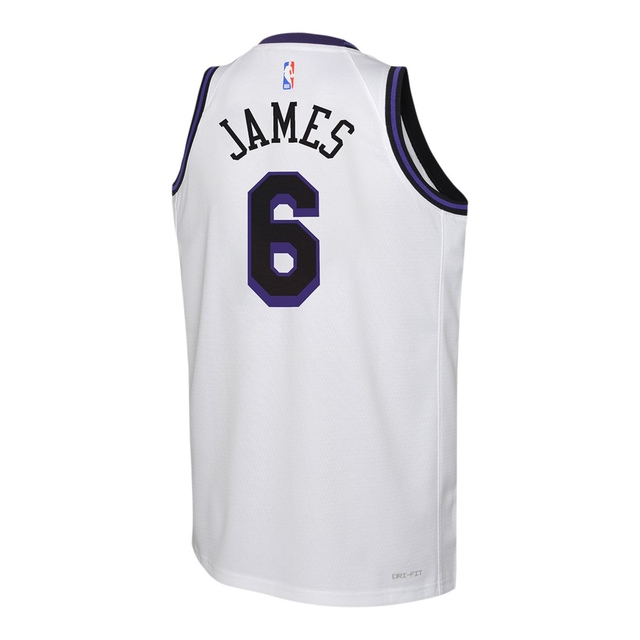 The Youth Nike NBA City Edition Swingman Jersey of the LA Lakers is inspired by the heritage and iconic identity of Los Angeles. Premium double-knit fabric has a classic jersey construction and a fit that looks great on all young fans. Complete with LeBron James player name & number.