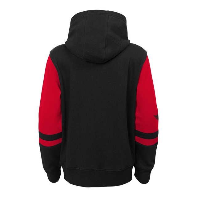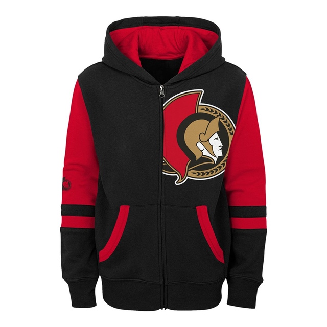 The NHL Face Off Full Zip fleece hood is a core staple for any young NHL Fan. Team and alternate colour based design with oversized team logo at left center chest. Comfortable cotton polyester blended fleece fabrication. Relaxed styling with full length zip and utility pockets. Contrast jersey lined three panel hood. Officially licensed by the NHL. Youth 8-20 size range.