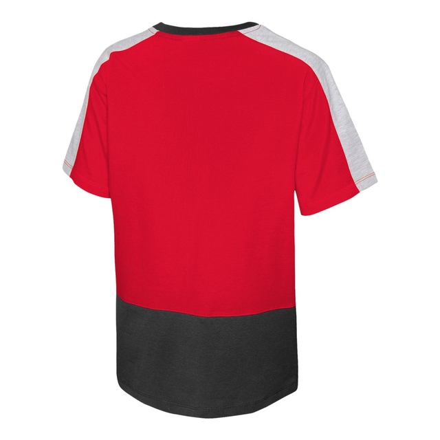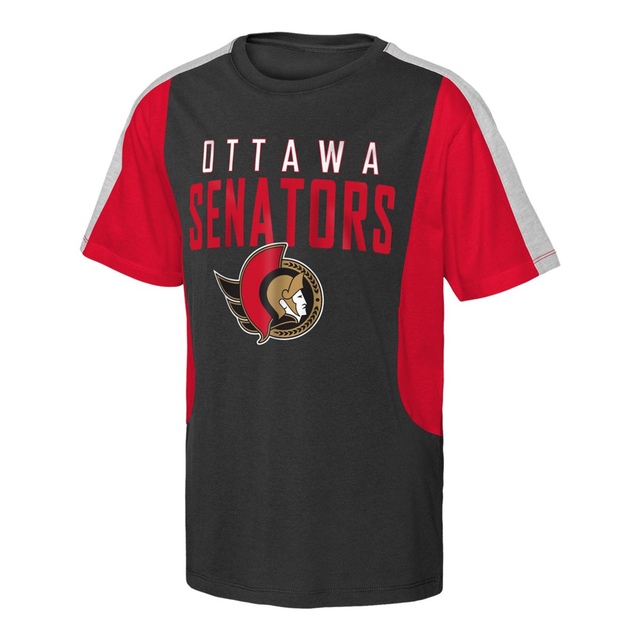 Show your favorite NHL teams colors in the youth Compelling Slapshot short sleeve color blocked top. Team and alternate color cut and sew design. Soft hand screen print featuring city, team name, and team logo. A fun look for every yound NHL fan. Officially licensed by the NHL. Youth 8 to 20 size range.