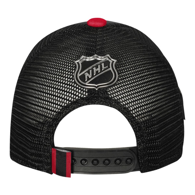 Represent your favorite NHL Teams number one Fan in the official Youth 2024 NHL Draft Structured Meshback Cap by Fanatics. Polyester spandex front panels and visor, spacer mesh back, and plastic adjustable snap closure construction. Patch applications with team identification on front and side with chrome NHL shield at back. Kids sizing. Officially licensed by the NHL.