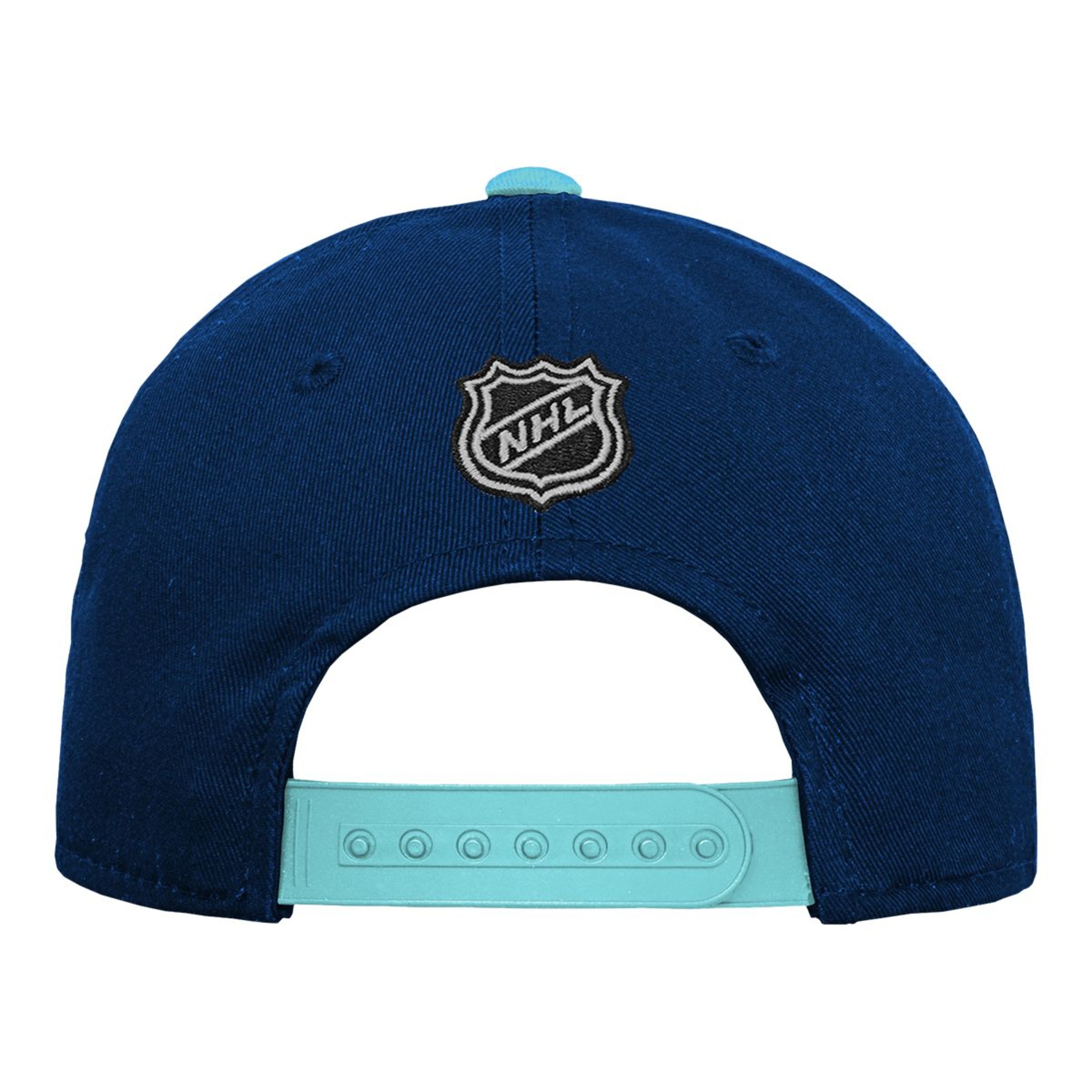 The youth Basic Logo Precurved Structured Snap Back Cap is an essential style for every young NHL Fan. Raised embroidered team logo front placement. Cotton twill fabrication in team colour. Alternate colour undervisor and top button. NHL Shield embroidery on back. Plastic adjustable snap closure. Officially licensed by the NHL. Youth sizing.