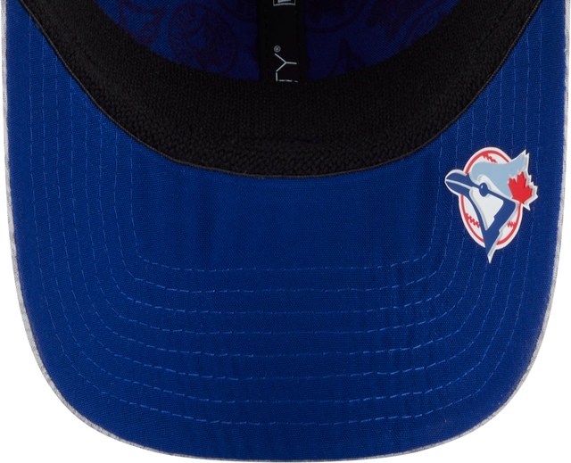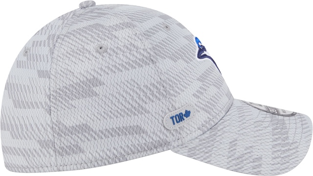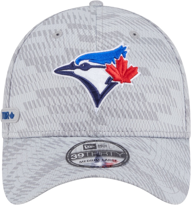 The Toronto Blue Jays youth 39THIRTY stretch-fit cap is part of the Clubhouse collection. This grey cap features digi-tech heather fabrication. The Blue Jays primary logo is embroidered on the front, while a small silicone badge with the Jays vintage primary logo is affixed to the royal blue undervisor. The MLB Batterman is embroidered at the back.