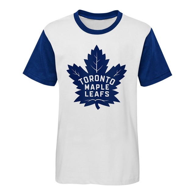 The NHL Winning Streak Primary logo short sleeve constructed tee is a statement style for any young Leafs fan. Two color 100% cotton body. Oversized softhand screen print team logo. Officially licensed by the NHL. Youth 8 to 20 size range.