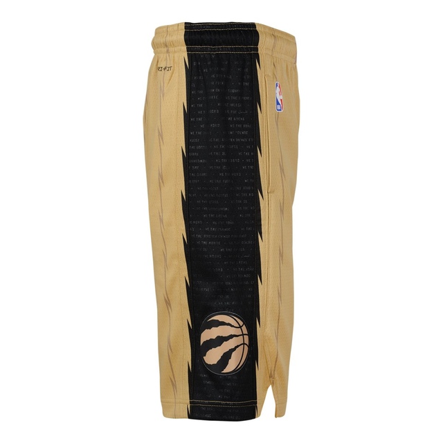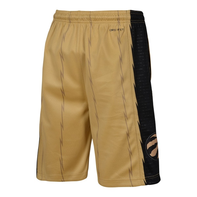 Young Raptors fans can celebrate Toronto in the 2023 - 2024 City Edition Swingman short by Nike. Two color Raptors gold and black City Edition design with authentic details. Nike Dri-Fit premium double knit mesh fabrication. Directly inspired by the on court short. Officially licensed by the NBA. Youth 8-20 size range.