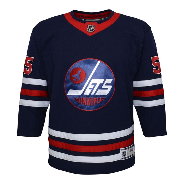 The Winnipeg Jets NHL Premier 3rd Alternate jersey is directly inspired by the on ice NHL jersey and the deep heritage of the franchise. Team specific design with stretch mesh contruction and twill cresting package. Complete with Mark Sheifele #55 twill player name and number. Officially licensed by the NHL and NHLPA. Youth S/M and L/XL sizing.