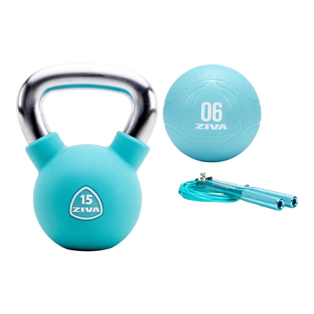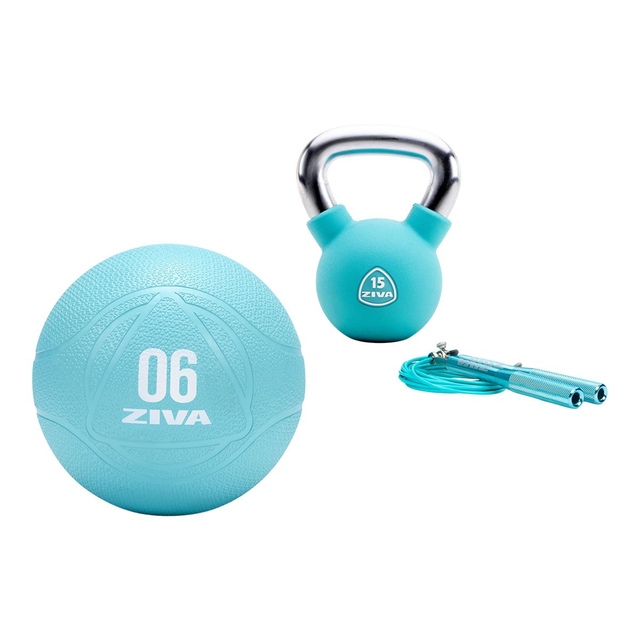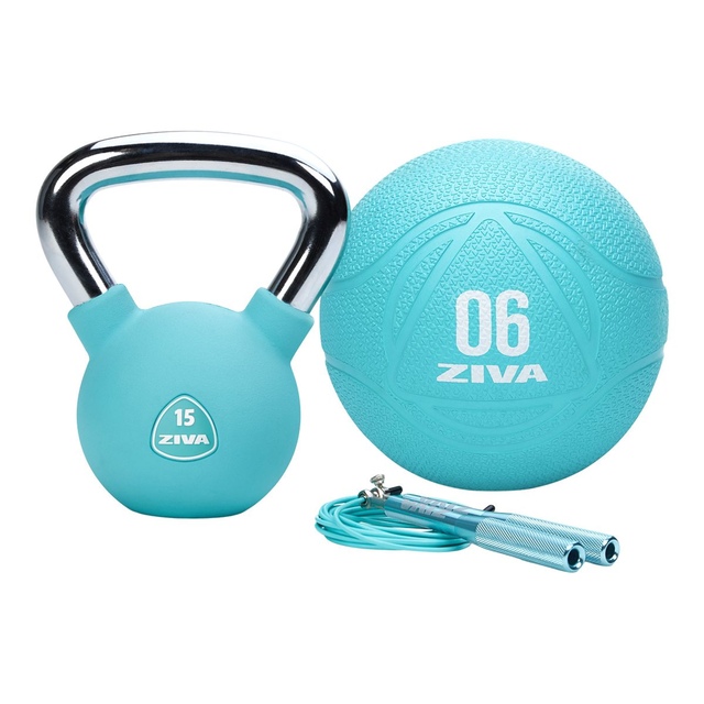 Power. Balance. Speed. Agility. Cover it all with ZIVA’s own Functional Kit premium workout bundle, the professional, best-in-class fitness solution for all levels that offer great value to boot. The 15 lb kettlebell is the tool of choice for dynamic and ballistic strength training, the 6 lb medicine ball will develop your core strength, stabilizers, and promotes balanced movement while the speed rope is the tried-and-true path to speed and agility. Start your fitness journey off right, or take it to the next level with commercial-grade fitness tools that are well within the reach of your dedicated at-home athlete.