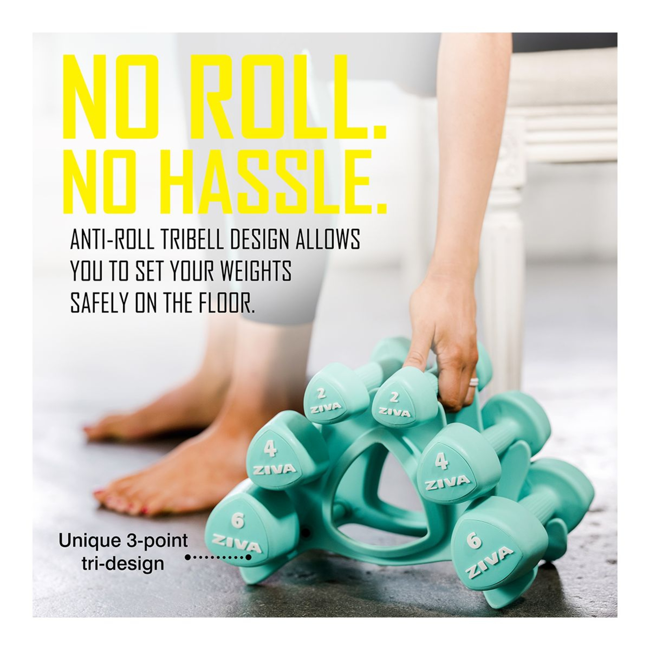 ZIVA’s innovative, iconic tribell design keeps your bells exactly where you put them so they’re where you need them, when you need them. Compact and stable, ZIVA RPU Tribells are coated in long-lasting, non-slip RPU and can be set down with confidence even on rounded or uneven surfaces thanks to their no-roll design. These eye-catching, studio-grade bells in ZIVA Black & Yellow look as at home in the living room or office as they do in the gym
