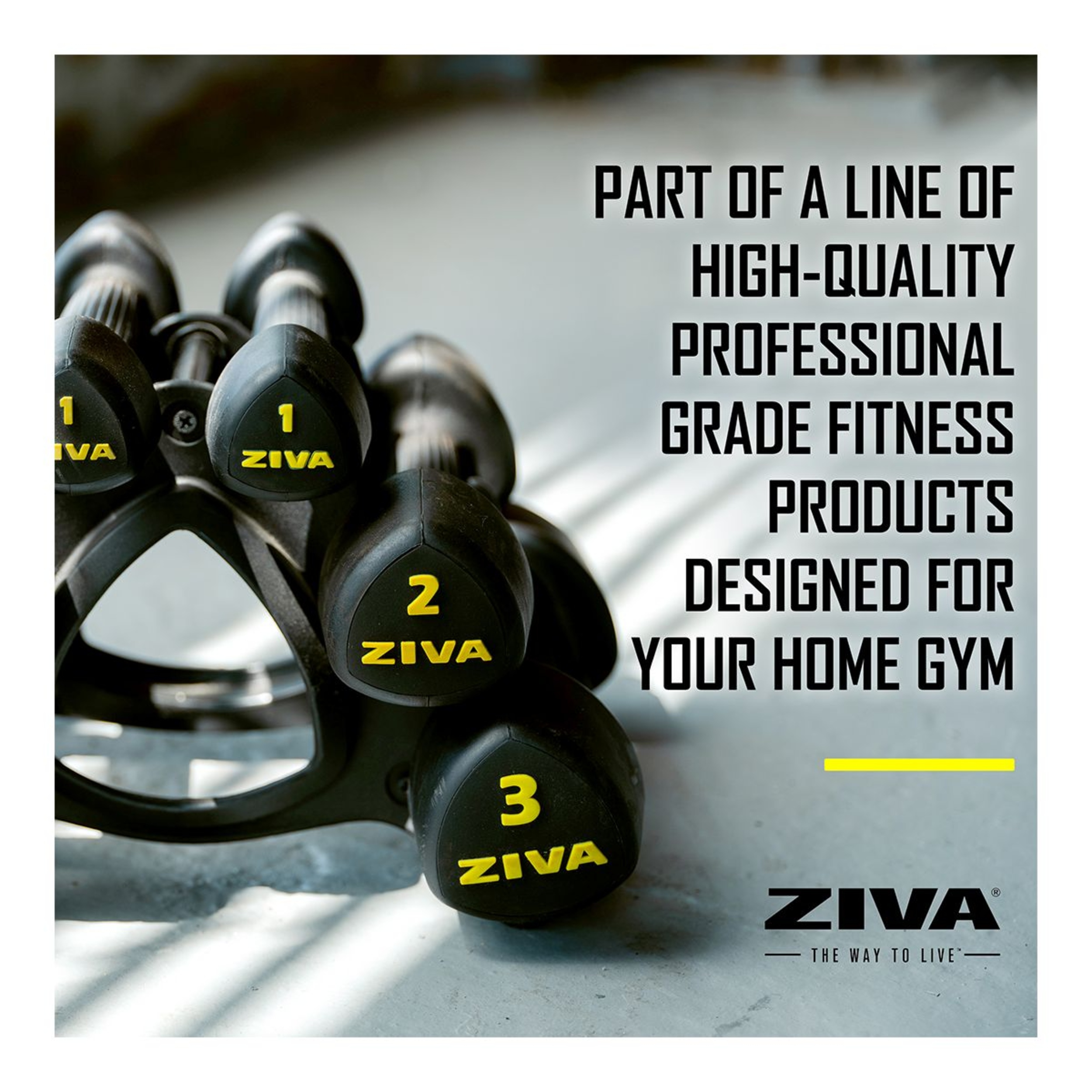 ZIVA’s innovative, iconic tribell design keeps your bells exactly where you put them so they’re where you need them, when you need them. Compact and stable, ZIVA RPU Tribells are coated in long-lasting, non-slip RPU and can be set down with confidence even on rounded or uneven surfaces thanks to their no-roll design. These eye-catching, studio-grade bells in ZIVA Black & Yellow look as at home in the living room or office as they do in the gym