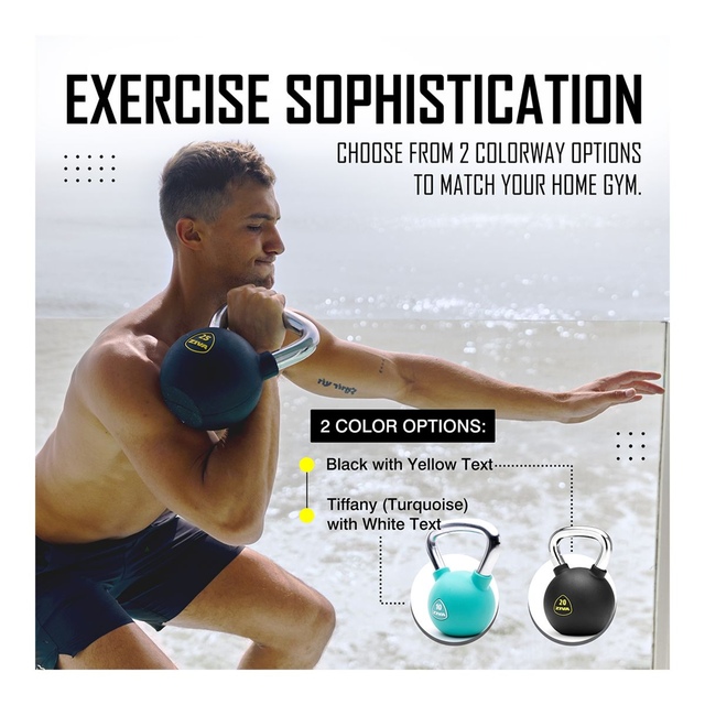 The ZIVA RPU Kettlebell takes this already perfect tool and enhances it with advanced wear-, rust-, and corrosion-resistant RPU coating that falls more softly than its conventional unadorned counterparts, making it ideal for the home gym. Its ultra-durable chrome grip is less prone to dings and scratches than cast iron or plastic, and is designed without knurling to challenge and strengthen your grip. Iconic, bold styling make our kettlebells gym centerpieces worthy display. The weight numbers are vibrantly marked for easy identification in vibrant ZIVA Yellow that matches perfectly with the surrounding black and chrome.