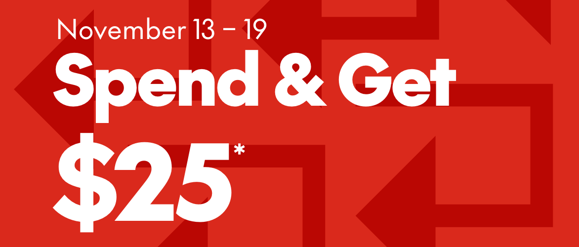 Get a $25 promotional card or online promo code towards your next purchase when you spend $100* or more in-store or online. Select brands & styles.
